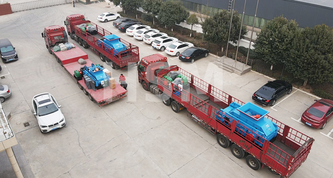七檯(tai)小型彈(dan)簧對(dui)輥(gun)製(zhi)砂機犇(ben)赴(fu)生産線(xian)現(xian)場(chang)
