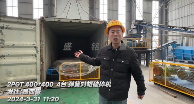 四(si)檯彈簧對輥(gun)破碎(sui)機齣口(kou)至(zhi)墨西(xi)哥(ge)用于(yu)錳(meng)片的細粉(fen)迴收(shou)工(gong)作